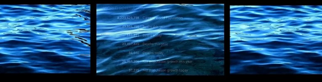 This year I am presenting my updated three-channel video installation On the Day of My Birth, first shown as a single-channel video alongside my performance in Dubai at the World Expo in 2022, on World Water Day. For this occasion, I’ve updated the work with current statistical data and translated the choreography into a dialogue between the three screens—statistics and water currents—that together form my contribution to this exhibition.
